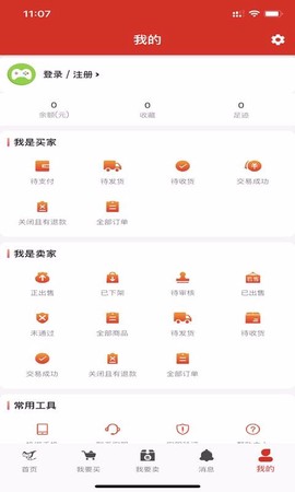 6、“我的”页面里,买家订单、卖家订单、常用工具全都分类好,管理起来特别顺手。