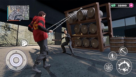 7、右侧的蛛网图标让您轻松吸附于高楼大厦,尽享飞檐走壁的快感。