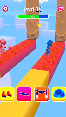 准备好开启一场脑洞大开的跑酷狂欢了吗?超能人变形记绝对能让你笑到扶墙!这不是普通的左右横跳跑酷,而是一场融合了变形超能力与魔性道具的奇幻冒险。指尖轻触屏幕的瞬间,你的角色就会像橡皮人一样拉伸变形,用各种匪夷所思的姿势穿越激光阵、跳过食人花,甚至能把自己压成纸片人从门缝里溜过去!