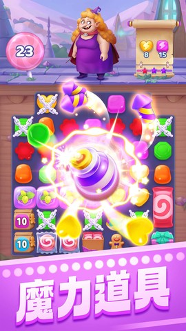4. 剧情伙伴超有戏:不止是消除!跟着傲娇魔法师宾果、元气少女莉莉,还有毒舌贝拉、呆萌贝琪这些性格鲜明的伙伴,一起智斗扔巧克力球的捣蛋女巫,勇闯昼夜变化的奇幻城堡,剧情代入感十足。