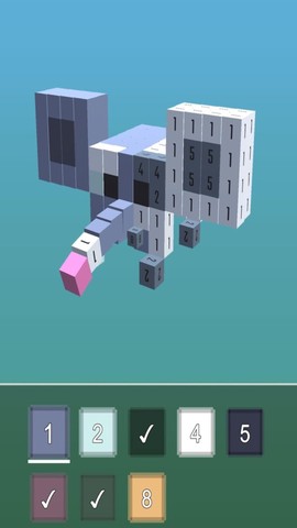1、采用极简交互设计,用户通过选择不同编号的立体网格单元进行填色操作,系统实时生成具有景深效果的3D渲染图像;