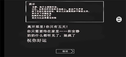 2、为了顺利逃离这座令人毛骨悚然的房子,你必须谨慎地注意老奶奶的听觉。尽量保持隐蔽,收集散落的线索,寻找那些至关重要的钥匙,最终打开那扇通往自由的大门。